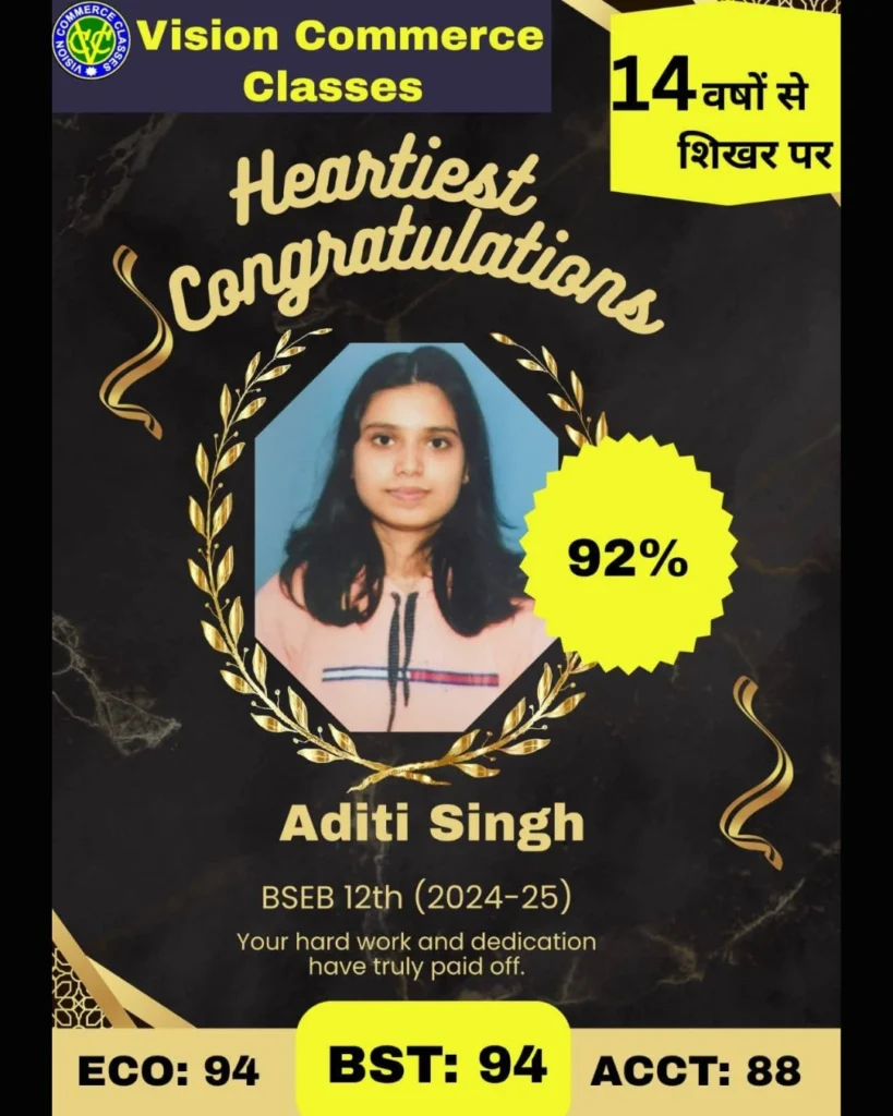 Vision Commerce Classes is the Best Commerce Coaching in Patna, offering complete guidance for Academic courses such as 11th and 12th (CBSE, ICSE, and State Board) along with B.Com. Our team of experienced and well-qualified faculty focuses on building strong concepts and providing personalized attention to every student. We are committed to delivering quality education that helps commerce students gain confidence and perform better in exams.